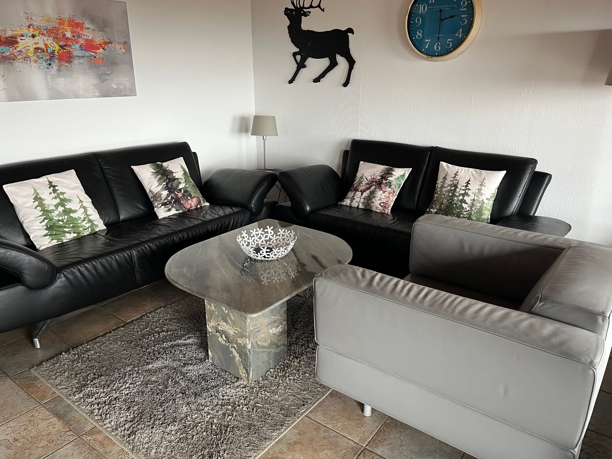 - 3er Sofa - 2er Sofa - Sessel - Stehlampe - Tischlampe - TV Flachbildschirm - Radio - div. Gläser - Kartenspiele - Bücher - Spiele